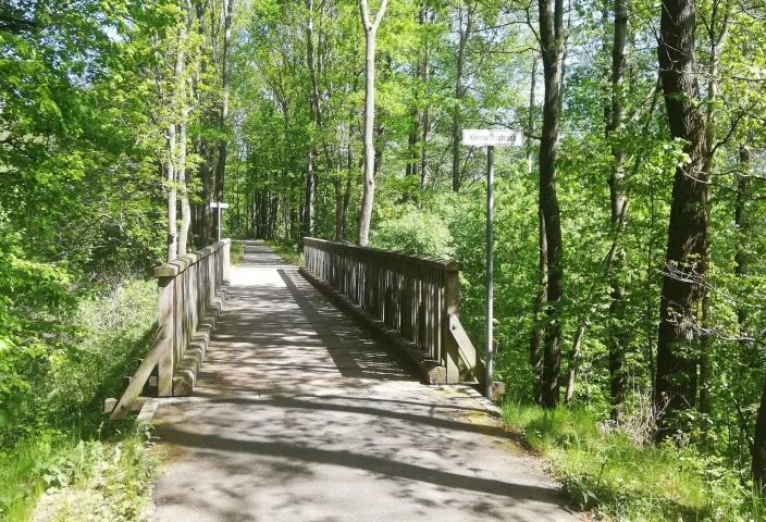 Wir durchqueren das Tor zur traditionsreichen Ausflugsgaststätte Neudeckmühle. Sie ist eine historische Wassermühle mit Mühlstein und Mühlgraben, erbaut 1794. Da werden Kindheitserinnerungen wach. Viele Male sind wird zum Wandertag in der Grundschule hierher gewandert, um auf der großen Schaukel zu "fliegen" und uns die leckeren Wanderbrote schmecken zu lassen.