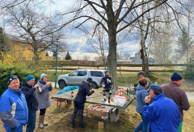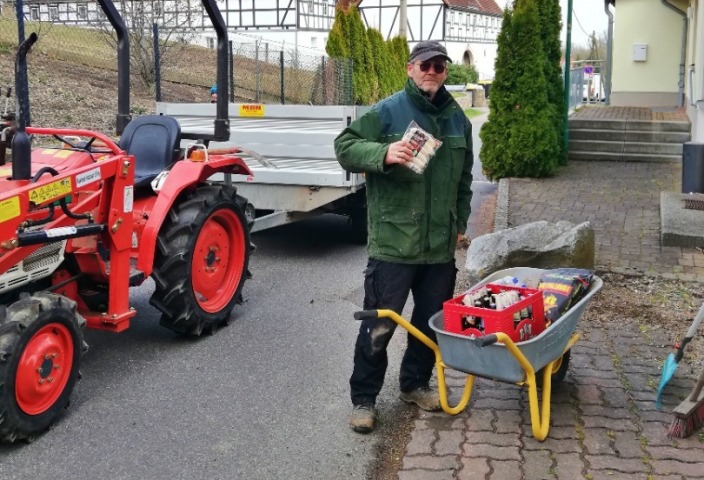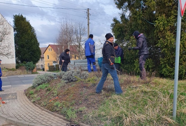 Doch da schlägt uns der Winter nochmal ein Schnippchen. Es ist kalt, Schnee ist angekündigt. Davon lassen sich die Hühndorfer aber nicht beeindrucken. 21 fleißige Helfer sind früh aufgestanden, um Wege zu kehren, Laub zu beseitigen, Beete von Unkraut zu befreien und unseren zentralen Platz an der Lichtertanne aufzuräumen. Müll wird in blaue Säcke verstaut, die dankeshalber von der Gemeinde zur Entsorgung abgeholt werden. Rund ums Vereinshaus ist geputzt, und unter der Linde ist der Platz vorbereitet für die neue Bepflanzung. Blumenkästen an den Eingangsschildern bekommen auch noch neuen Blumenschmuck, wenn das Wetter es zulässt.