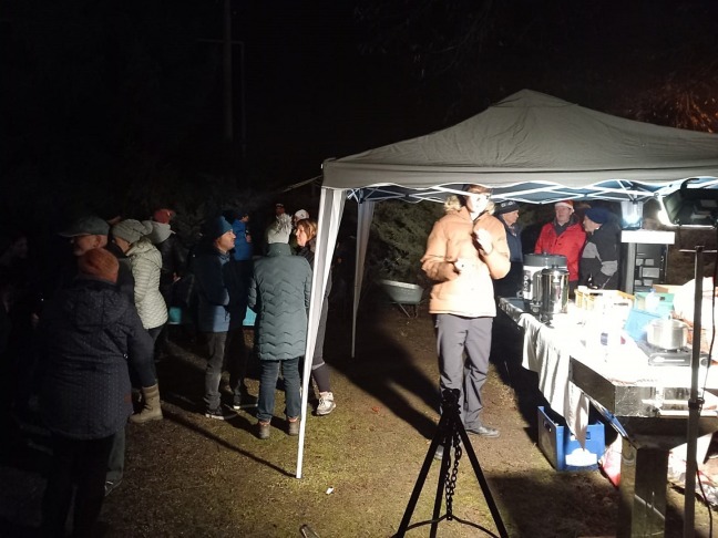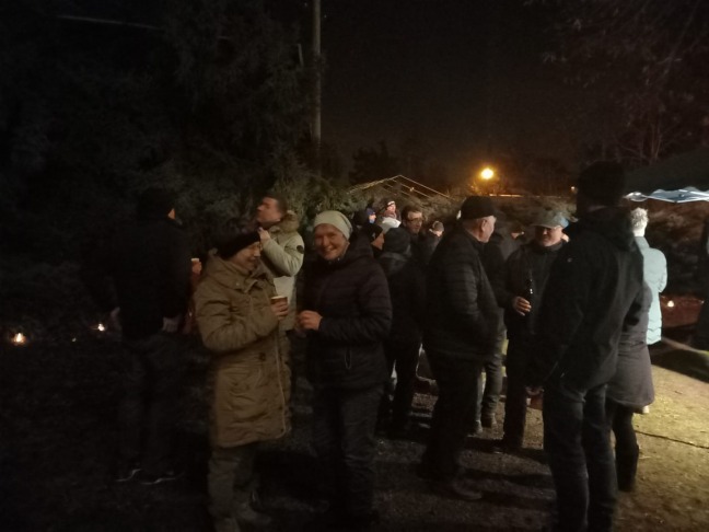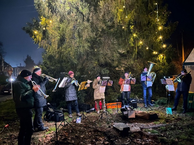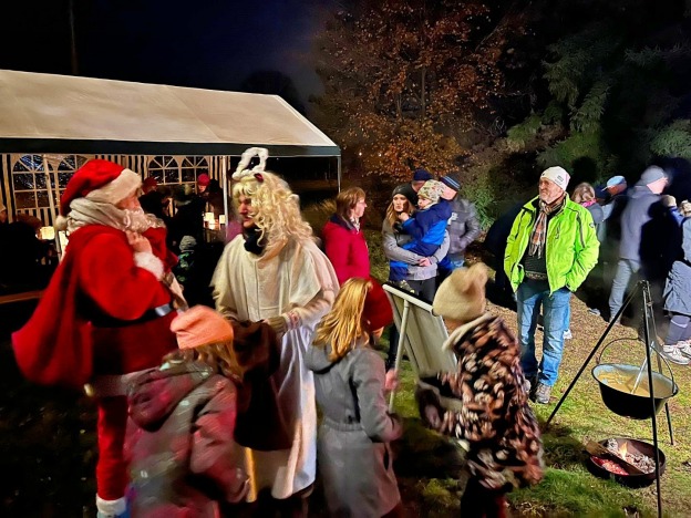 2 Jahre haben wir darauf gewartet, endlich wieder zusammen unter unserer beleuchteten weithin sichtbaren Tanne ein wundervolles Fest zu feiern. Viele sind gekommen und warten gut gelaunt auf den Posaunenchor, der uns zum traditionellen Weihnachtsliedersingen begleiten wird. Die Noten sind schon ausgeteilt und schon besingen wir den Weihnachtsbaum. Viele können diesen Text natürlich auswendig, doch auch eher unbekannte Lieder können wir mitsingen, wenn wir auf den Text schauen. Einige hören nur zu und genießen die Stimmung hier auf unserem kleinen Dorfplatz oder haben keine Hand frei für die Noten, denn Bratwurst, leckere Kartoffelsuppe, Glühwein und andere Getränke wollen heiß vernascht werden. Es ist kalt, zum Glück lodern die Feuer zum Erwärmen und das Backen von Knüppelkuchen überbrückt die Zeit des Wartens. Ja, es ist wirklich wahr. Das Christkind und der Weihnachtsmann kommen in unser Dörfchen. Die Kinderaugen leuchten – wie schön. Es wird wieder eine schöne Weihnachtszeit, das fühlt sich gut an.