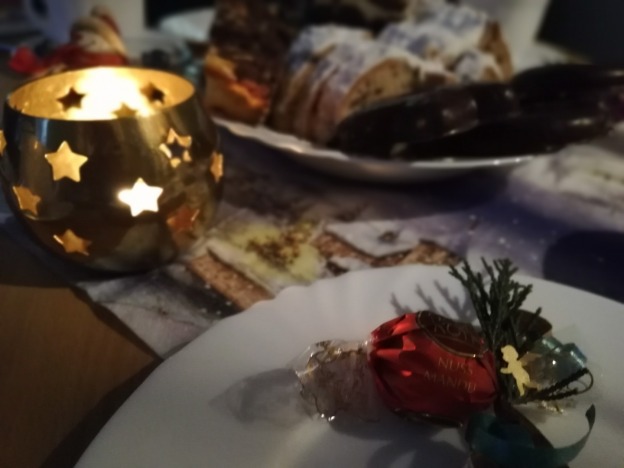 Schon beim Eintreten strömt mir der Duft von Räucherkerzen gemischt mit Kaffeearoma entgegen und stimmt mich versöhnlich mit dem bisherigen Weihnachtsstress, die „Wir-schenken-uns-nichts-Pakete“ einpacken – das kennen sicher einige Leser – den Weihnachtsbaum besorgen, die Diskussionen über das bevorstehende Weihnachtsessen – Gans, Ente, Rouladen oder vielleicht doch lieber vegetarisch? – das alles fällt von mir ab. Hier ist es einfach nur schön. Die Tische sind eingedeckt und hübsch dekoriert. Für jeden liegt ein kleines Präsent auf dem Teller.