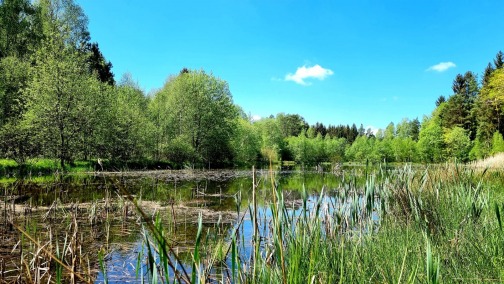 Und weiter marschieren wir vorbei an den „Löffels Teichen“. Fische werden hier leider nicht mehr gezüchtet, doch so ein Waldsee hat immer etwas Anziehendes, da muss noch schnell ein Gruppenfoto sein. Ein kleiner Ort erwartet uns, Kleinschönberg, es sagt der Name, es geht bergan. Belohnt werden wir mit einer wundervollen Aussicht auf die umliegenden Dörfer und weit über das andere Elbufer hinaus. Nun geht’s wieder bergab ins ruhige Saubachtal. Bis zur Neudeckmühle begleitet uns das Plätschern der „Wilden Sau“ und ganz so, als raune es uns alte Geschichten zu.