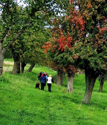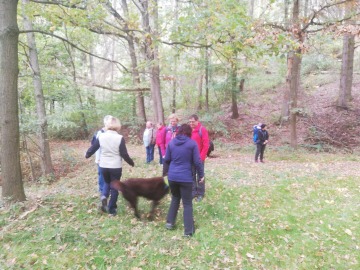 Es ist Samstag mittag –12 vergnügte Wanderer und 2 Fellknäule laufen und springen den Dorfberg hinab, entlang am Hühndorfer Dorfbach ins schöne Prinzbachtal.