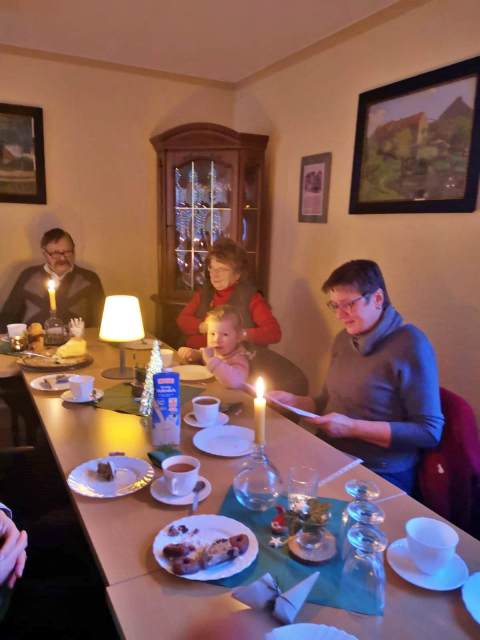 Weihnachtlich duftet es beim Eintreten in unser Vereinshaus. Die Tische sind festlich geschmückt, leise spielen Weihnachtslieder im Hintergrund und ich freue mich auf die vielen Gäste, die hoffentlich den Weg zu uns finden. Wir sind dabei, beim lebendigen Adventskalender in Klipphausen.