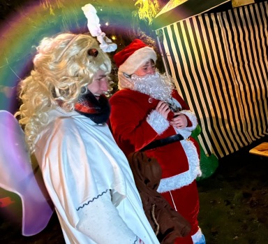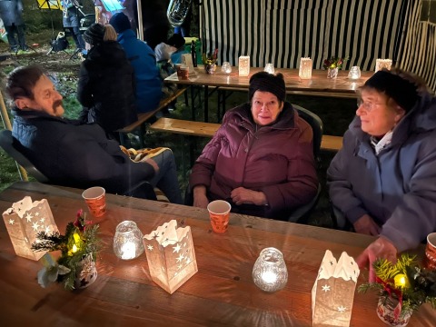 2 Jahre haben wir darauf gewartet, endlich wieder zusammen unter unserer beleuchteten weithin sichtbaren Tanne ein wundervolles Fest zu feiern. Viele sind gekommen und warten gut gelaunt auf den Posaunenchor, der uns zum traditionellen Weihnachtsliedersingen begleiten wird. Die Noten sind schon ausgeteilt und schon besingen wir den Weihnachtsbaum. Viele können diesen Text natürlich auswendig, doch auch eher unbekannte Lieder können wir mitsingen, wenn wir auf den Text schauen. Einige hören nur zu und genießen die Stimmung hier auf unserem kleinen Dorfplatz oder haben keine Hand frei für die Noten, denn Bratwurst, leckere Kartoffelsuppe, Glühwein und andere Getränke wollen heiß vernascht werden. Es ist kalt, zum Glück lodern die Feuer zum Erwärmen und das Backen von Knüppelkuchen überbrückt die Zeit des Wartens. Ja, es ist wirklich wahr. Das Christkind und der Weihnachtsmann kommen in unser Dörfchen. Die Kinderaugen leuchten – wie schön. Es wird wieder eine schöne Weihnachtszeit, das fühlt sich gut an.