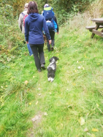Es ist Samstag mittag –12 vergnügte Wanderer und 2 Fellknäule laufen und springen den Dorfberg hinab, entlang am Hühndorfer Dorfbach ins schöne Prinzbachtal.