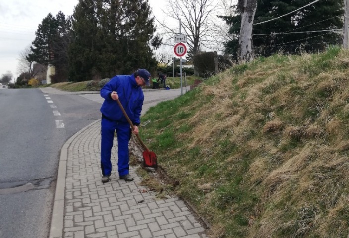 Doch da schlägt uns der Winter nochmal ein Schnippchen. Es ist kalt, Schnee ist angekündigt. Davon lassen sich die Hühndorfer aber nicht beeindrucken. 21 fleißige Helfer sind früh aufgestanden, um Wege zu kehren, Laub zu beseitigen, Beete von Unkraut zu befreien und unseren zentralen Platz an der Lichtertanne aufzuräumen. Müll wird in blaue Säcke verstaut, die dankeshalber von der Gemeinde zur Entsorgung abgeholt werden. Rund ums Vereinshaus ist geputzt, und unter der Linde ist der Platz vorbereitet für die neue Bepflanzung. Blumenkästen an den Eingangsschildern bekommen auch noch neuen Blumenschmuck, wenn das Wetter es zulässt.