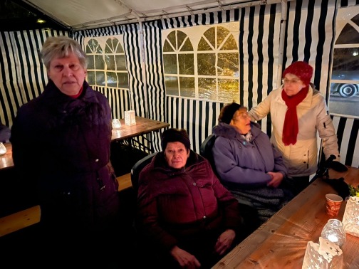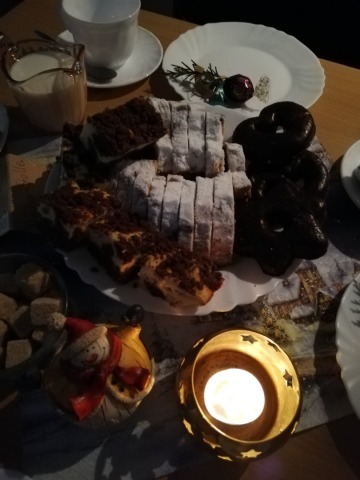 Es kommen schon die ersten Besucher und freuen sich auf Stollen, leckeren Zupfkuchen, Pfefferkuchen und Kaffe oder Kakao. Natürlich darf es auch ein Glühwein zum Aufwärmen sein.