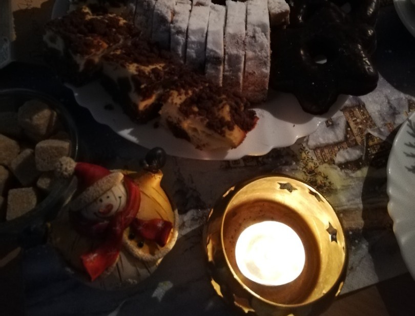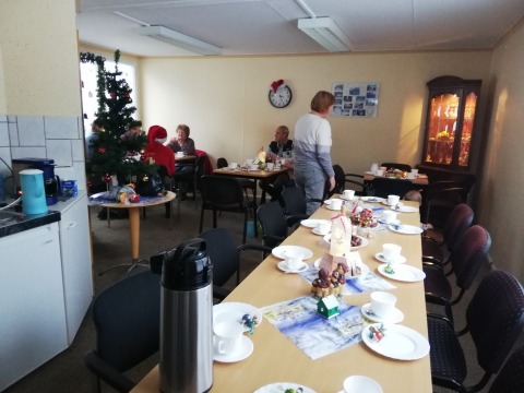 Schon beim Eintreten strömt mir der Duft von Räucherkerzen gemischt mit Kaffeearoma entgegen und stimmt mich versöhnlich mit dem bisherigen Weihnachtsstress, die „Wir-schenken-uns-nichts-Pakete“ einpacken – das kennen sicher einige Leser – den Weihnachtsbaum besorgen, die Diskussionen über das bevorstehende Weihnachtsessen – Gans, Ente, Rouladen oder vielleicht doch lieber vegetarisch? – das alles fällt von mir ab. Hier ist es einfach nur schön. Die Tische sind eingedeckt und hübsch dekoriert. Für jeden liegt ein kleines Präsent auf dem Teller.