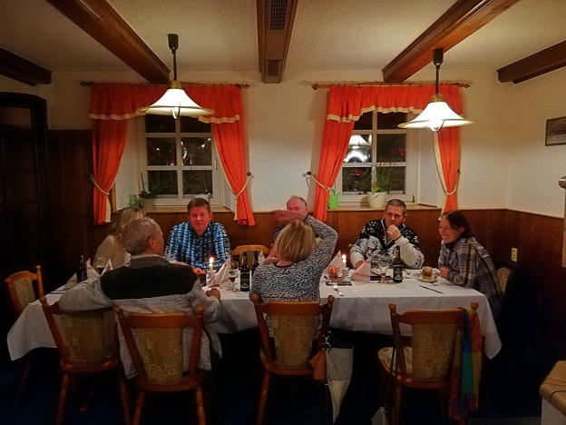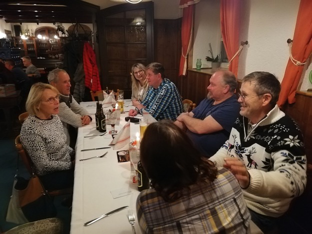 Nun sputen wir uns aber, denn im Amtshof ist der Tisch schön gedeckt und wir sind überrascht. Ein kleines Dankeschön vom Heimatverein liegt an jedem Platz. Gänsekeulen, Rinderbäckchen und weitere leckere Gaumenfreuden befrieden unseren hungrigen Magen. Es wird noch ein lustiger Abend.