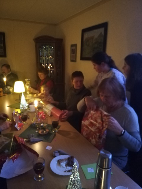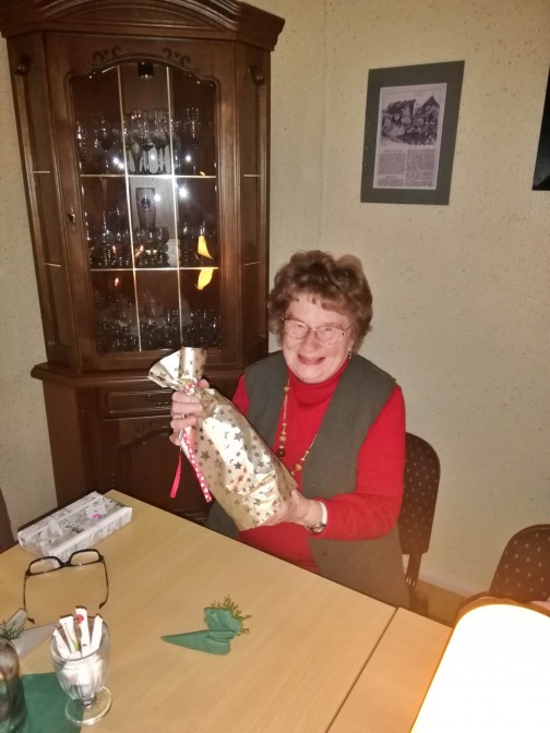 Schön! Langsam füllt sich der Raum und es wird immer gemütlicher. Das Murmeln der Leute vermischt sich mit der weihnachtlichen Musik und wir, das sind Kerstin Leue, Anja Koch und ich, schauen uns zufrieden an. Der Kaffeeduft verführt und leckerer Stollen und Kuchen muss einfach vernascht werden. Da schaut keiner auf die Kalorien. Nun wird es musikalisch, begleitet von wohlklingenden Flötentönen. Stille Nacht, Sind die Lichter angezündet und auch der Tannenbaum wird besungen. Ach wie wunderbar. Weihnachtsgedichte und lustige Geschichten verkürzen die Zeit, bis zur Wichtellotterie. Jedes Los gewinnt, und so ist es fast wie beim Schrottwichteln, spannend, lustig und es wird getauscht und bestaunt.