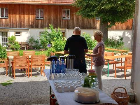 Das Sommerkaffee im Hof von Ulrike und Willi lud, mit vielen überraschenden Momenten, auch Gäste aus nah und fern ein. Besonders der kleine Kräutergarten sorgte für einen regen Informationsaustausch und so wanderte die eine oder andere Pflanze flugs auch in „Nachbars“ Garten.