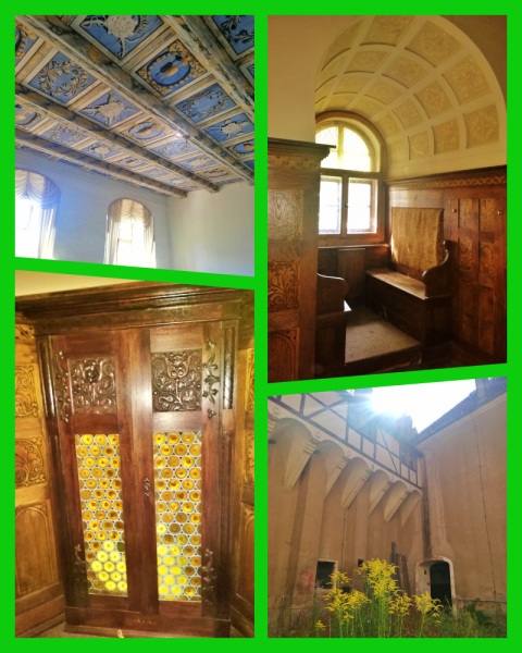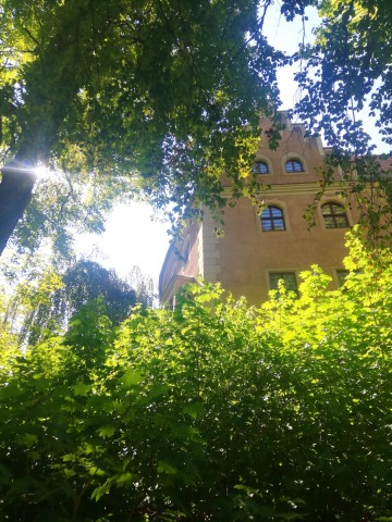 Anmutig glänzt das Schloß in der Sonne und ich stelle mir ganz romantische Geschichten vor. Leider kann man es offiziell nur von außen anschauen. Man muss schon Glück haben, wenn da zufällig eine Tür offen steht. Ob man da noch viel vom ursprünglichen Wohnsitz sieht? Einen Innenhof würde man hier nicht vermuten. Und doch gibt es ihn. Nun sollen Eigentumswohungen darin entstehen. Ob das klappt?