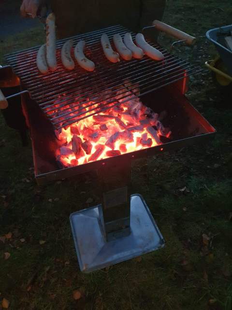 Schon bald erreichen wir den sehnsüchtig erwarteten Picknickplatz. Ich habe Durst, fast schon hochsommerliche Temperaturen begleiteten uns auf dem Weg. Doch im lichten Schatten der Bäume ist es angenehm. Der Andreas verwöhnt uns im Namen des Heimatvereins wieder. Leckere Fischbrötchen, knusprige Buletten und Kerstins saftigen Apfelkuchen, einen guten Kaffee gepaart mit einem Kaltgetränk ist doch genau das richtige jetzt. Die Pause genießen wir gemeinsam und plaudern über neue Ideen.