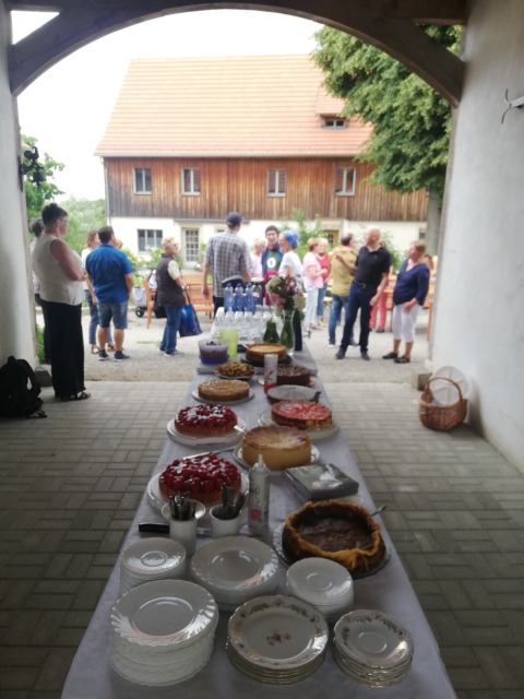 Die Sonne meint es heute fast zu gut. Wir haben Glück und es sind auch ein paar Wölkchen am Himmel. Fachwerk, schöne Blumen und einladene Tische - nun können die Gäste kommen. Langsam füllt sich der Hof. Über 40 Besucher habe ich diesmal gezählt. Gemütlich ist es hier auf jeden Fall. Manche Leute haben sich lange nicht gesehen, oder haben hier mal gewohnt, da gibt es viel zu reden und zu schauen. Viele Helfer und Bäcker haben einen genüsslichen Nachmittag organisiert. Viel zu schnell vergeht die Zeit, doch es bleibt eine schöne Erinnerung an diesen Nachmittag und die Freude auf nächstes Jahr, wenn wir wieder einladen dürfen zu einem gemeinsamen Kaffeetrinken bei einem netten Gastgeber in unserem Dörfchen. Danke Willi und Ulrike, dass wir bei Euch sein durften. Danke an alle Helfer und Bäcker für die Unterstützung.